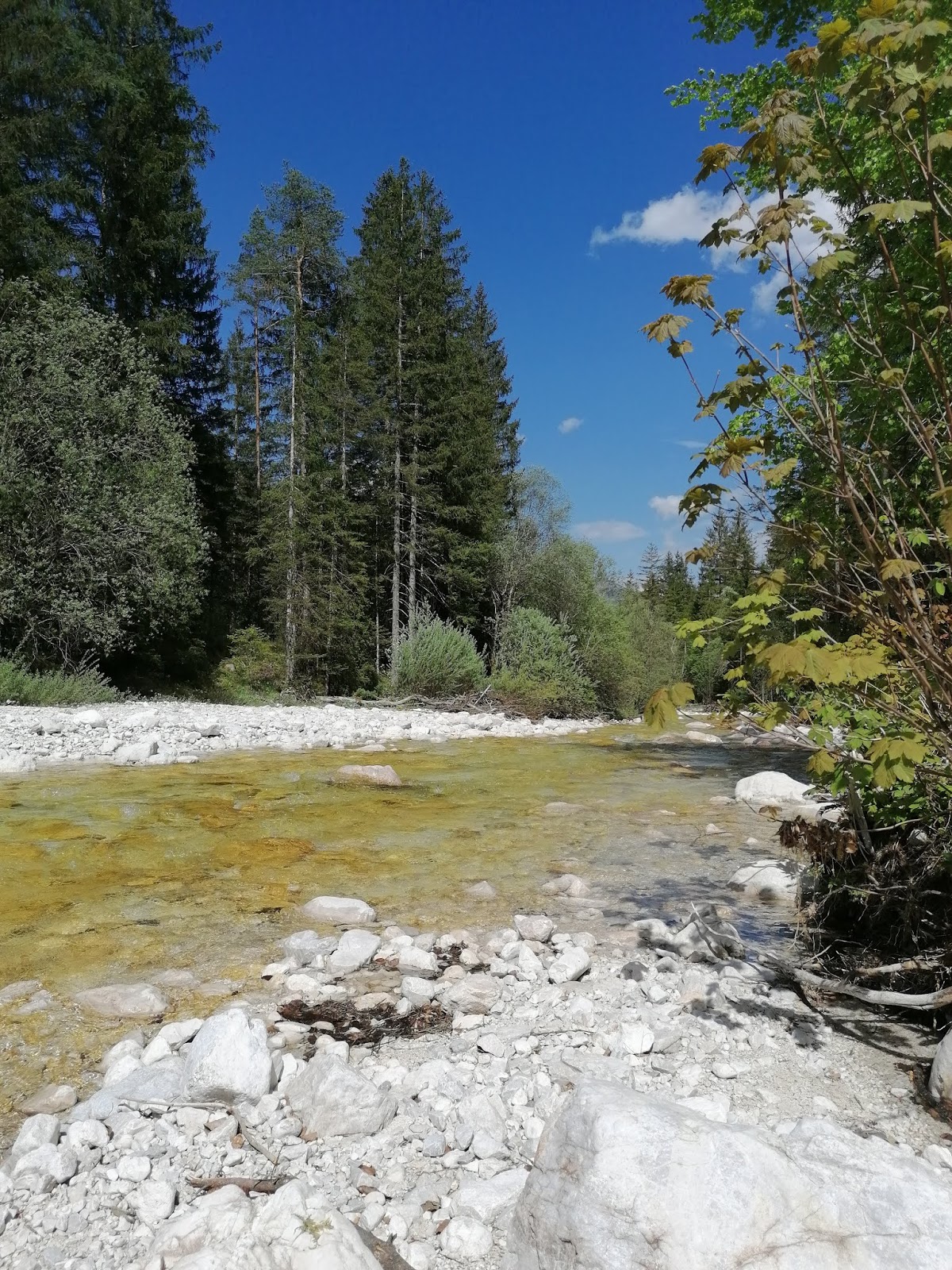 Zjutraj sva se za kratko ustavila pod Vršičem in šla pogledat Ajdovsko deklico. Prvič sem si od blizu pogledala rusko leseno kapelico pod Vršičem. Potem sva šla do vstopne točke za najin pohodniški nedeljski podvig. Gledat njega in hoditi ob njegovi Bistrici je bilo še kako vredno dneva.